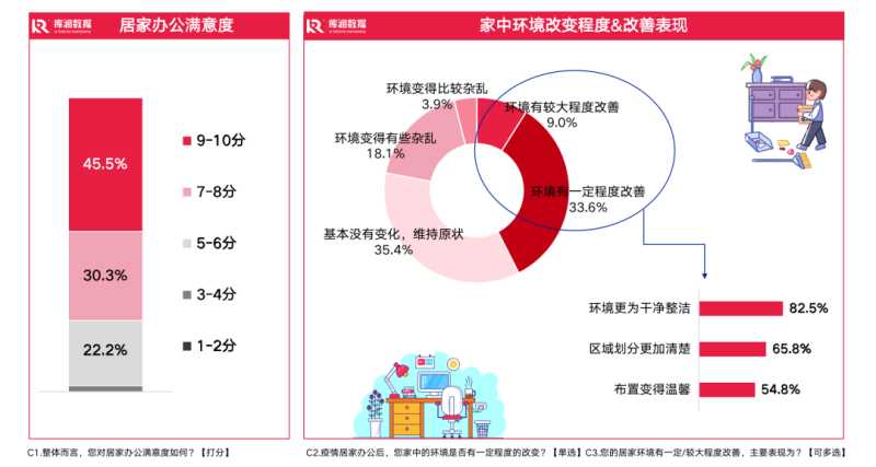 40%以上的人反馈家中环境有一定、较大程度改善,变得更为干净整洁。
