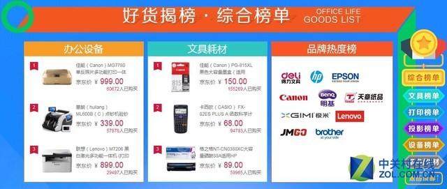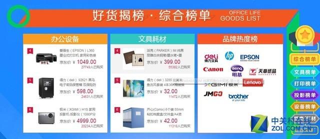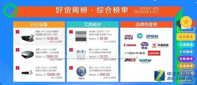 【中关村在线原创】火爆的11.11大促销已经落下了帷幕。今天电商京东给出了京东办公的好货榜榜单。这份榜单推出日期是20号,应该是对应了上周的促销。由于只有综合的办公榜单有数字,所以我们就来看看都有哪些我们熟悉的产品上榜。