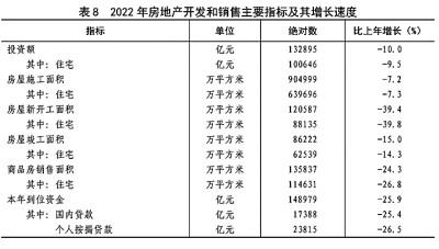 全年全国各类棚户区改造开工134万套,基本建成181万套;全国保障性租赁住房开工建设和筹集265万套(间)。全年全国新开工改造城镇老旧小区5.25万个,涉及居民876万户。(见表8)