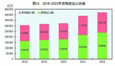 全年货物进出口总额420678亿元,比上年增长7.7%。其中,出口239654亿元,增长10.5%;进口181024亿元,增长4.3%。货物进出口顺差58630亿元,比上年增加15330亿元。对“一带一路”[40]沿线国家进出口总额138339亿元,比上年增长19.4%。其中,出口78877亿元,增长20.0%;进口59461亿元,增长18.7%。对《区域全面经济伙伴关系协定》(RCEP)其他成员国[41]进出口额129499亿元,比上年增长7.5%。(见图16)(见表9)(见表10)(见表11)(见表12)