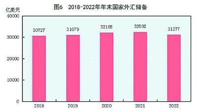 年末国家外汇储备31277亿美元,比上年末减少1225亿美元。全年人民币平均汇率为1美元兑6.7261元人民币,比上年贬值4.1%。(见图6)