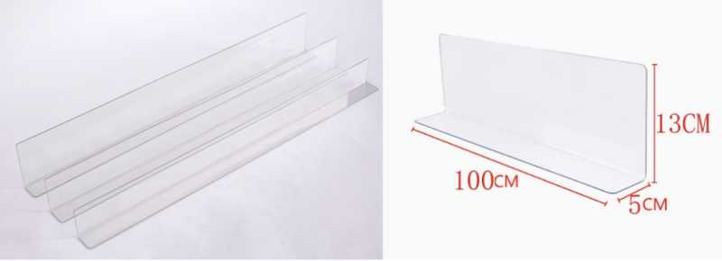 第三种,透明PVC材质的L型挡板 ⭐️ 优点:透明、轻便好好装、防止物品掉落