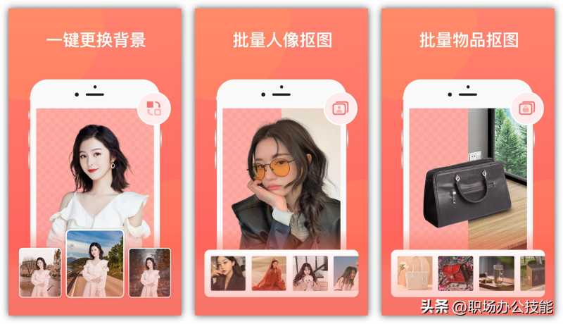 手机上必备的一款做图神器!当你需要抠图人像或者物品,用它进行AI自动抠图,无需手动操作,还可以对多个文件批量处理,抠好的图片可以直接切换背景,用于制作证件照也非常方便!