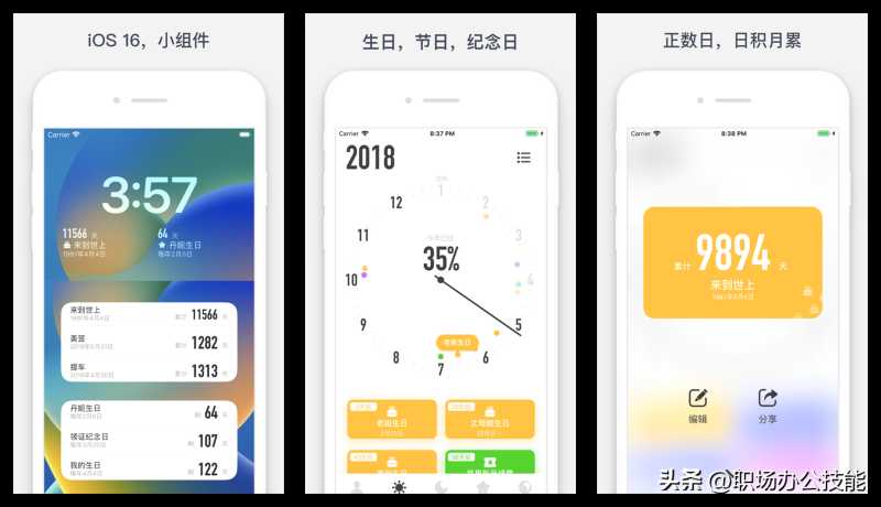 虽然生活很忙,但仪式感还是要有的, 各种生日、纪念日全靠它来帮忙记。以倒数表盘的形式,展示每年每月的纪念日和重大事件,设置定时提醒功能,还可以制作成精美卡片发朋友圈。