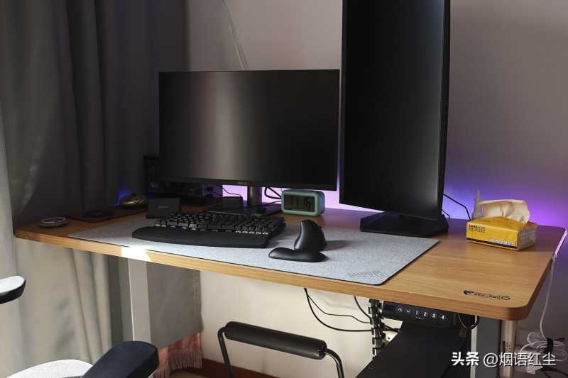 升降桌安装好之后,我总是感觉桌面非常单调,考虑了多种方案,也陆续换了好几块桌垫,最终留下来的是这块山业的大毛毡桌垫。这块桌垫采用双层设计,上层是精密毛毡,下层是防滑橡胶,使用鼠标时非常顺滑,天冷时还具有保暖效果。