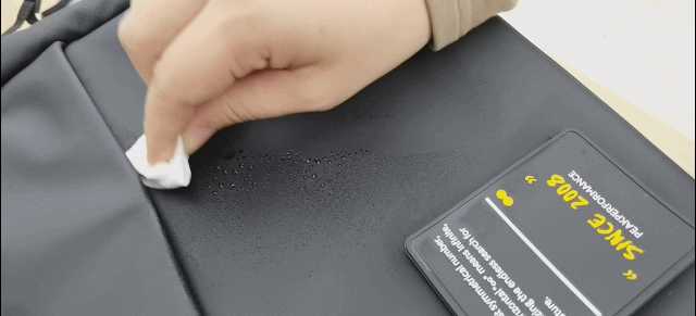 而且这种材质还具有防水功能,即使弄脏、弄湿了,用纸巾轻轻一擦就干净。这一点还是很不错的。因为如果书包里里面放的是电子产品,这一防水功能就显得很重要。