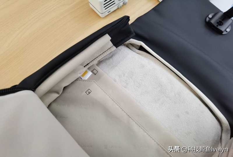 有个细节,书包最里面的一层还采用了天鹅绒质感的材质,对于你心爱的电子产品就不怕会被划伤,这一点确实很不错。