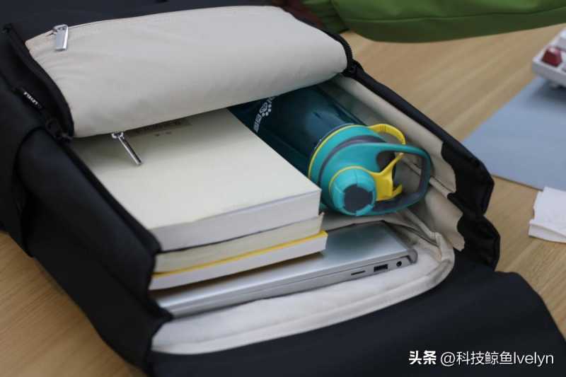 地平线8号Moment 书包容量为20L,收纳区也很多。书包内部两侧还设置有拉链,打开之后就可以将前面板翻折,收纳也更加方便。内部收纳袋层次分明,而且还有带拉链独立收纳袋,对于比较私密重要的东西就可以放里面。