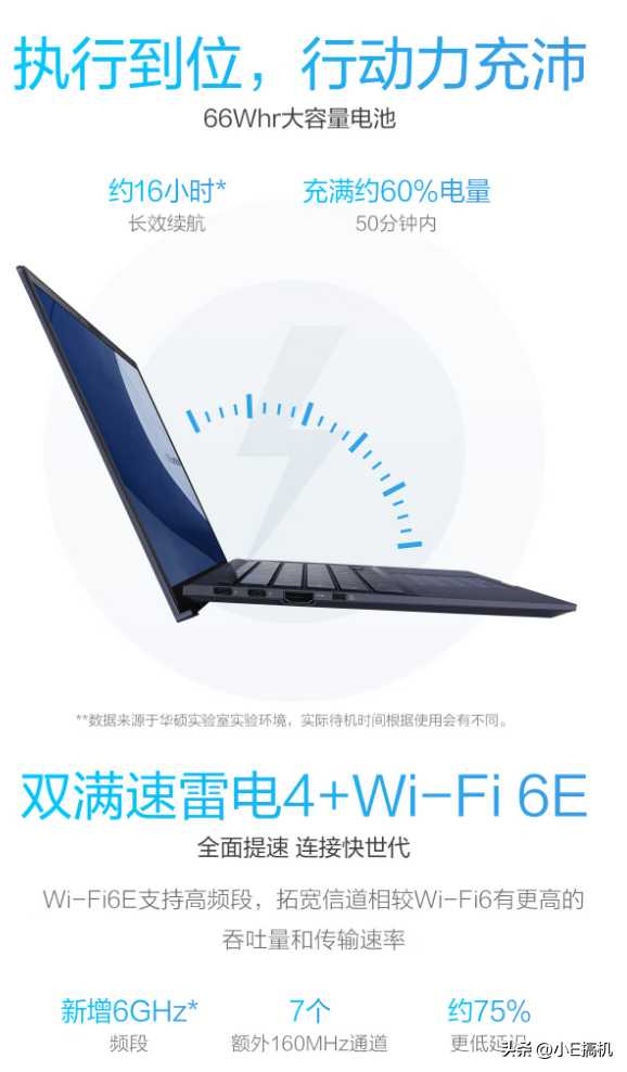 华硕破晓Air轻薄商务本搭载了66Whr大容量电池,具备16小时长效续航能力,且支持50分钟内充满约60%电量。其超强续航能力,支持用户外出办公一整天,也可以免去充电的苦恼。