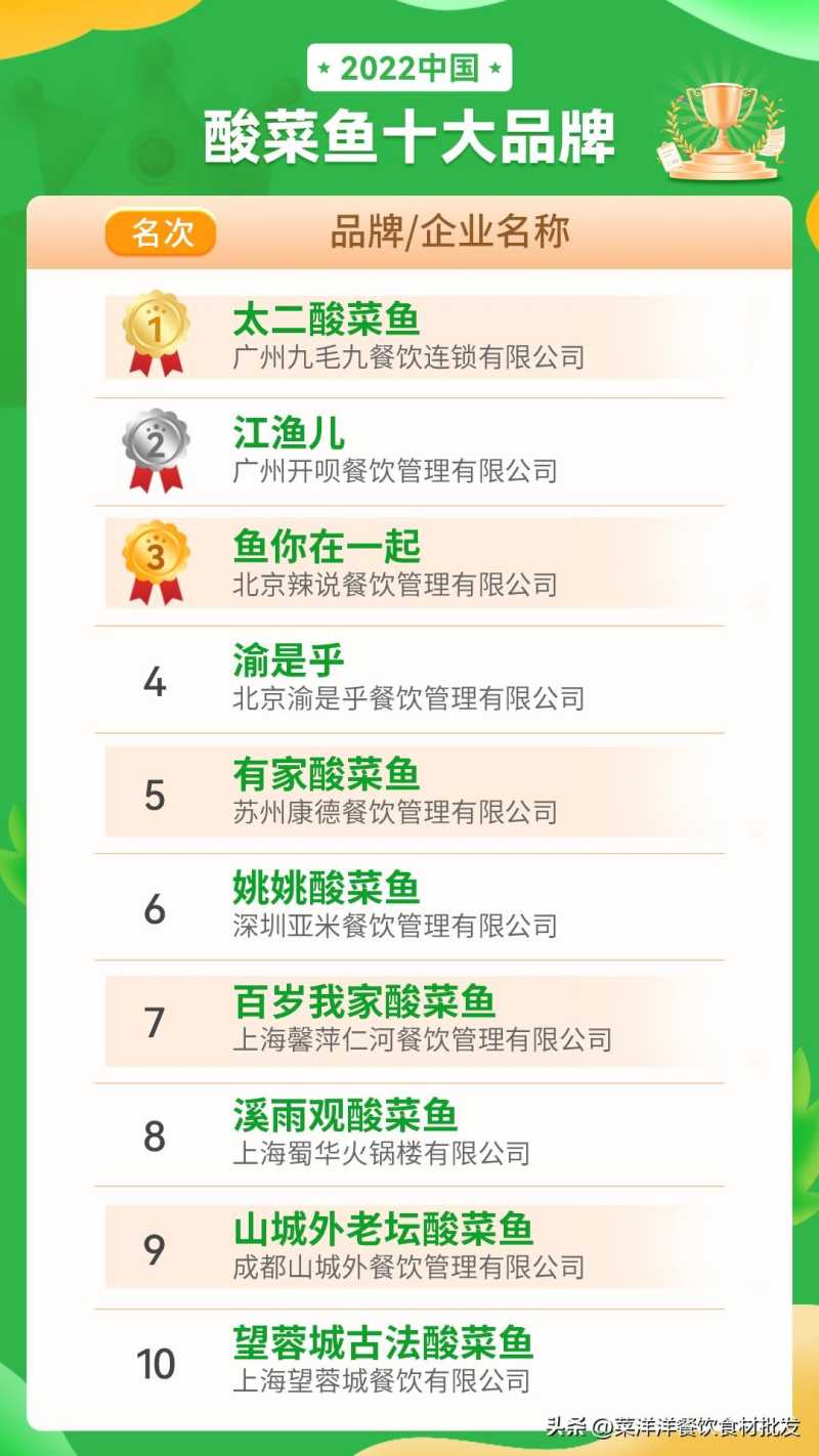2022年中国餐饮排行榜出炉!烤鱼、酸菜鱼等知名连锁店上榜!