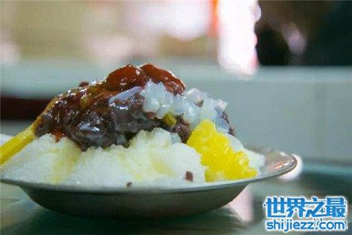 自然少不了热干面,而江汉路有一家叫做刘老味的热干面是非常好吃的,他的面筋道爽滑,酱香十分浓厚,里面的佐料加的很齐全,比如说酸菜醋都可以根据自己的口味来添加,非常好吃,下面要介绍这家店铺,他是卖甜品的,他的店名叫阿里山蜜豆冰,这个阿里山蜜豆冰是这条路上年代比较久远的店铺了,他不像现在的很多甜点,有那么多的花样,里面的主要佐料是冰霜红豆和绿豆,有红豆绿豆的清甜加上透心凉的冰霜,是一个非常好吃的甜点,在夏天使用是非常好的。