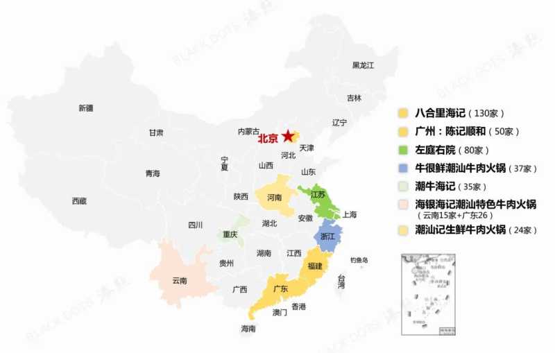 陈记顺和虽然不是品类中门店数最亮眼的,但却是稳扎稳打的。在布局全国市场是先构建供应链系统,然后围绕供应链扎堆开店,以保障牛肉食材和配送牛肉的品质。