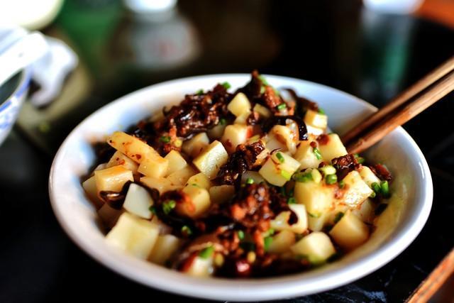 据说这里的菜品最能体现地道的湖南风味。餐厅环境虽简约,但整洁有序,木桌木椅摆放得井井有条。鸭掌筋作为招牌菜,辣味浓郁,口感嚼劲十足;酸萝卜肚丝则酸辣香三味俱全,十分适合搭配米饭食用;米豆腐这一湖南特色菜品也做得非常地道;此外,泡辣椒炒牛肉和火焙鱼也备受食客推崇。