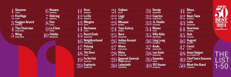 2024 “亚洲50最佳餐厅”名单揭晓,来自19个城市的餐厅8家新上榜
