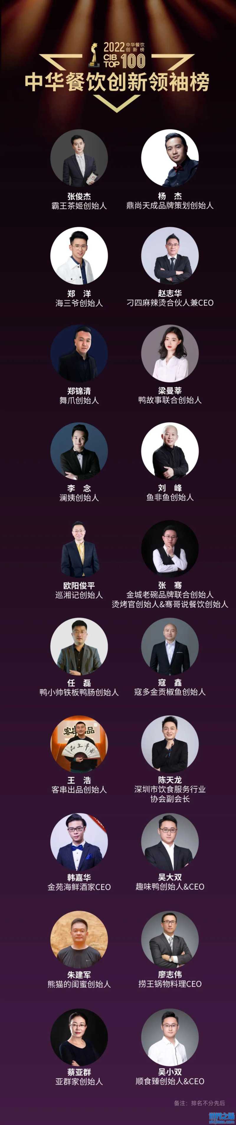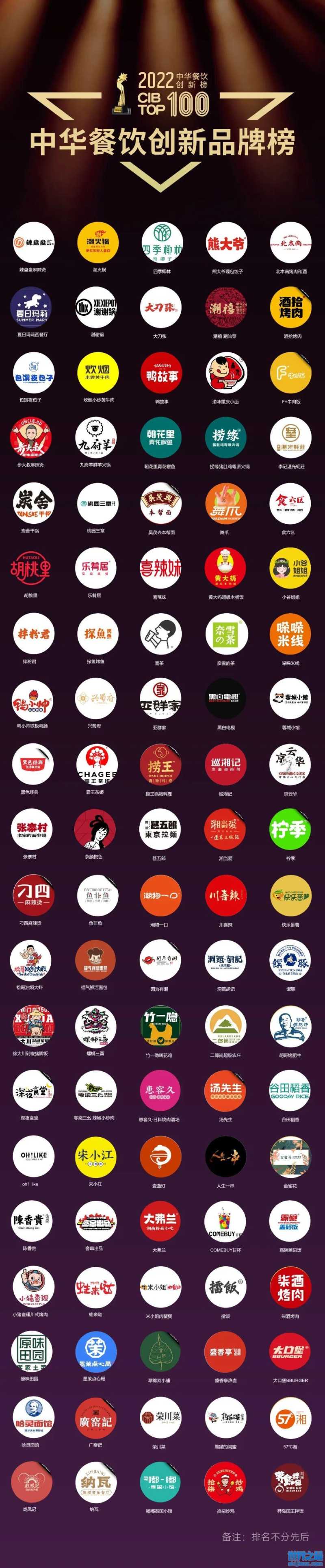 重磅:2022第六届中华餐饮创新榜TOP100榜单线上揭晓!