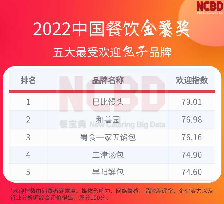20、五大最受欢迎包子品牌:巴比馒头、和善园、蜀食一家五馅包、三津汤包、早阳鲜包。