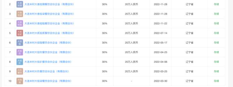 某自然人小股东在部分大连的运营主体(来源:天眼查APP)