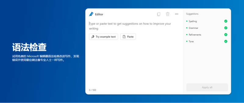 在线语法检查器是微软出品的在线英语语法检查网站。