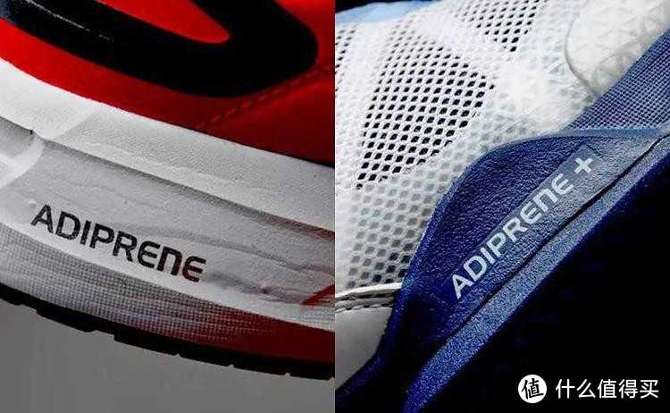 adiPRENE:adiPRENE是ADIDAS阿迪达斯后脚掌减震材料,一般嵌入在鞋中底后跟位置,是一种专利EVA材料,重量比普通材料轻20%,并且更耐用,小蜂巢式的结构使其有着理想的弹性减震特点,可在脚后跟部位受到冲击时提供缓冲保护作用,以增强双脚稳定性和保护性。