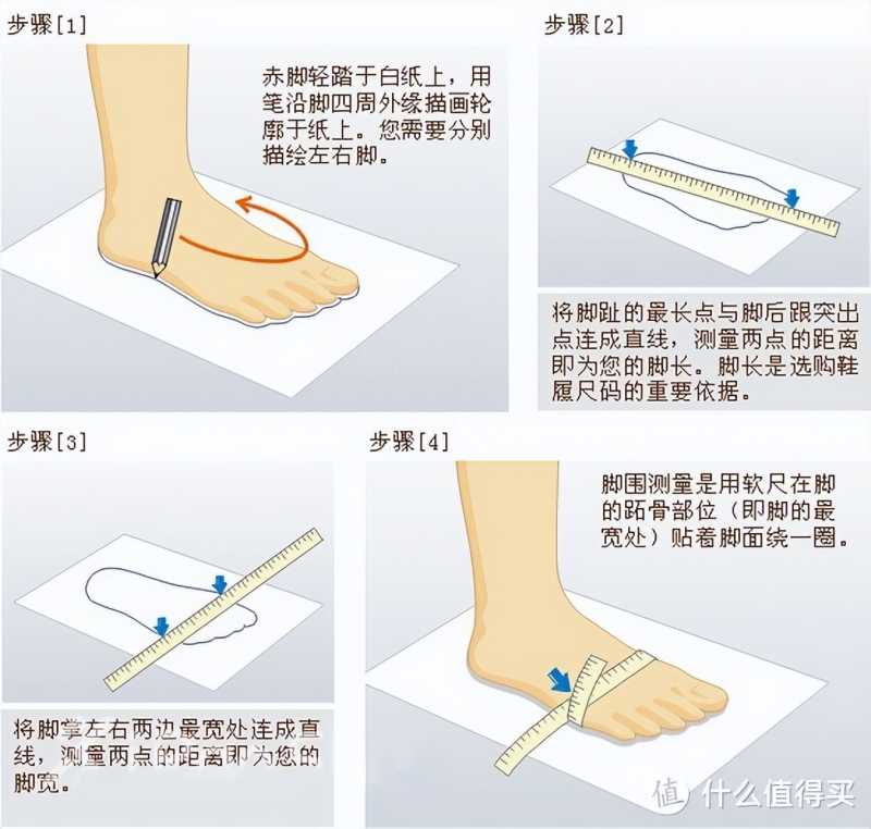 选购NIKE耐克、ADIDAS阿迪达斯跑鞋前,最好先测量弄清楚自己的脚部数据,具体包括脚长、脚宽和脚围等,参考测量方法详见下图2,这样做可以帮助选到更为适合自己的码数。
