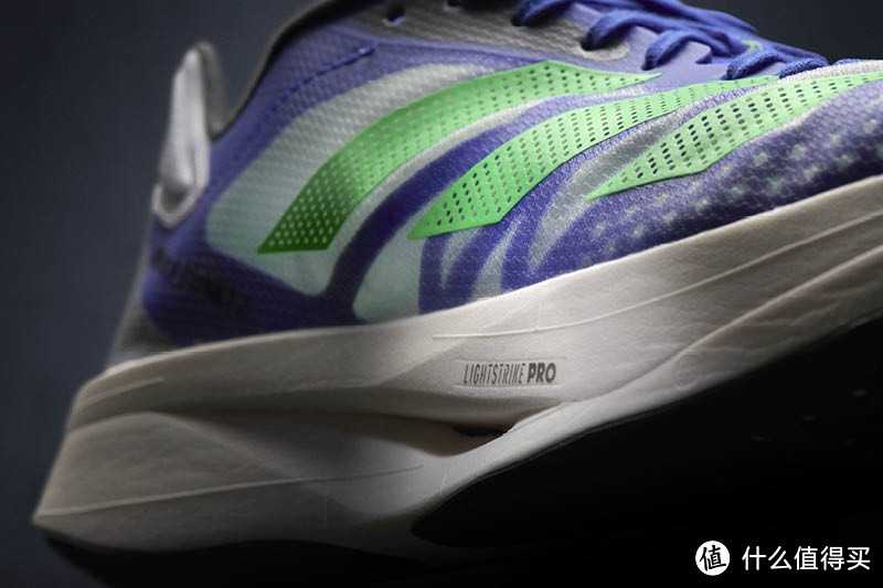 LIGHTSTRIKE PRO :LIGHTSTRIKE PRO中底同样由 EVA 材料研发而来,具备良好回弹柔软性,是ADIDAS阿迪达斯目前最轻、最弹的中底材料。