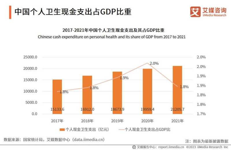 数据显示,2017-2020年,中国个人现金卫生支出占国内生产总值比重持续增长,2021年略微下降,占1.8%。艾媒咨询分析师认为,个人卫生现金支出占国内生产总值比重的提高体现中国国民整体洗护卫生意识的增强。
