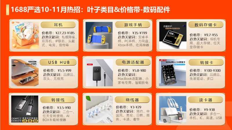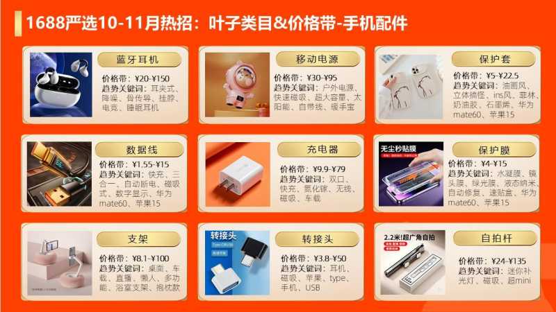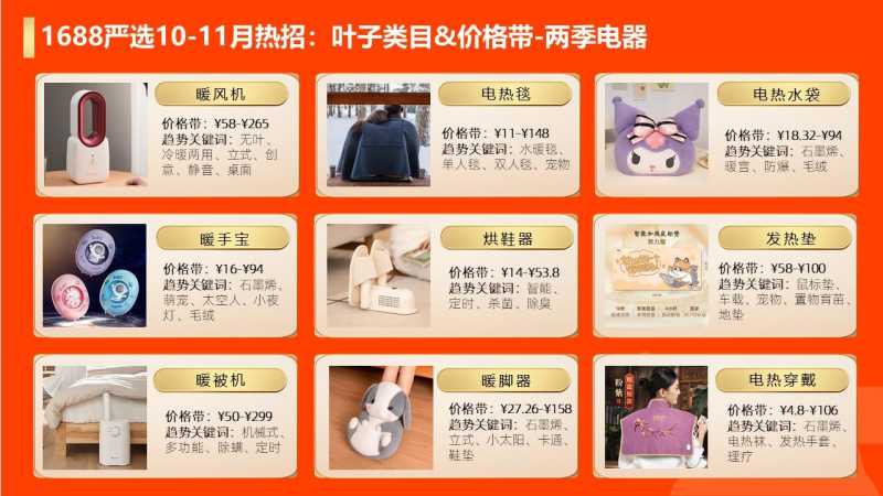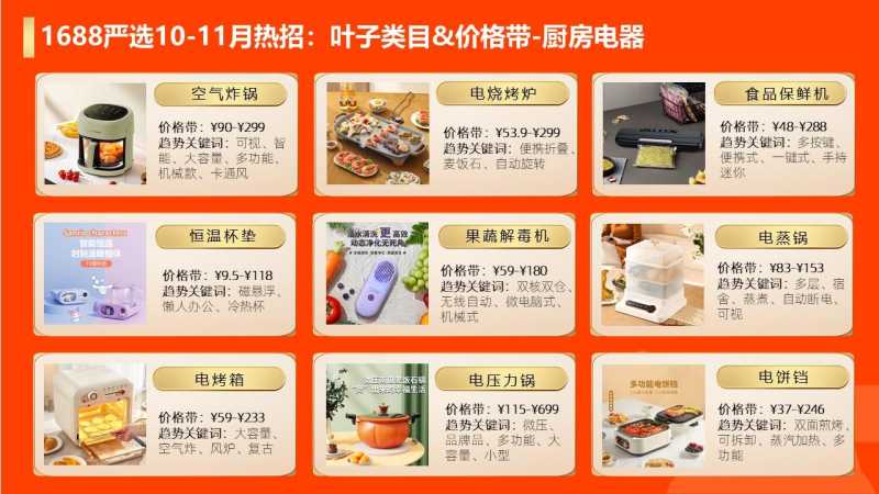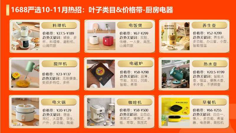 抓紧查看1688严选【家用电器,数码、电脑,汽车用品】行业热招商机趋势品类,加入严选获取更多高价值买家!!!