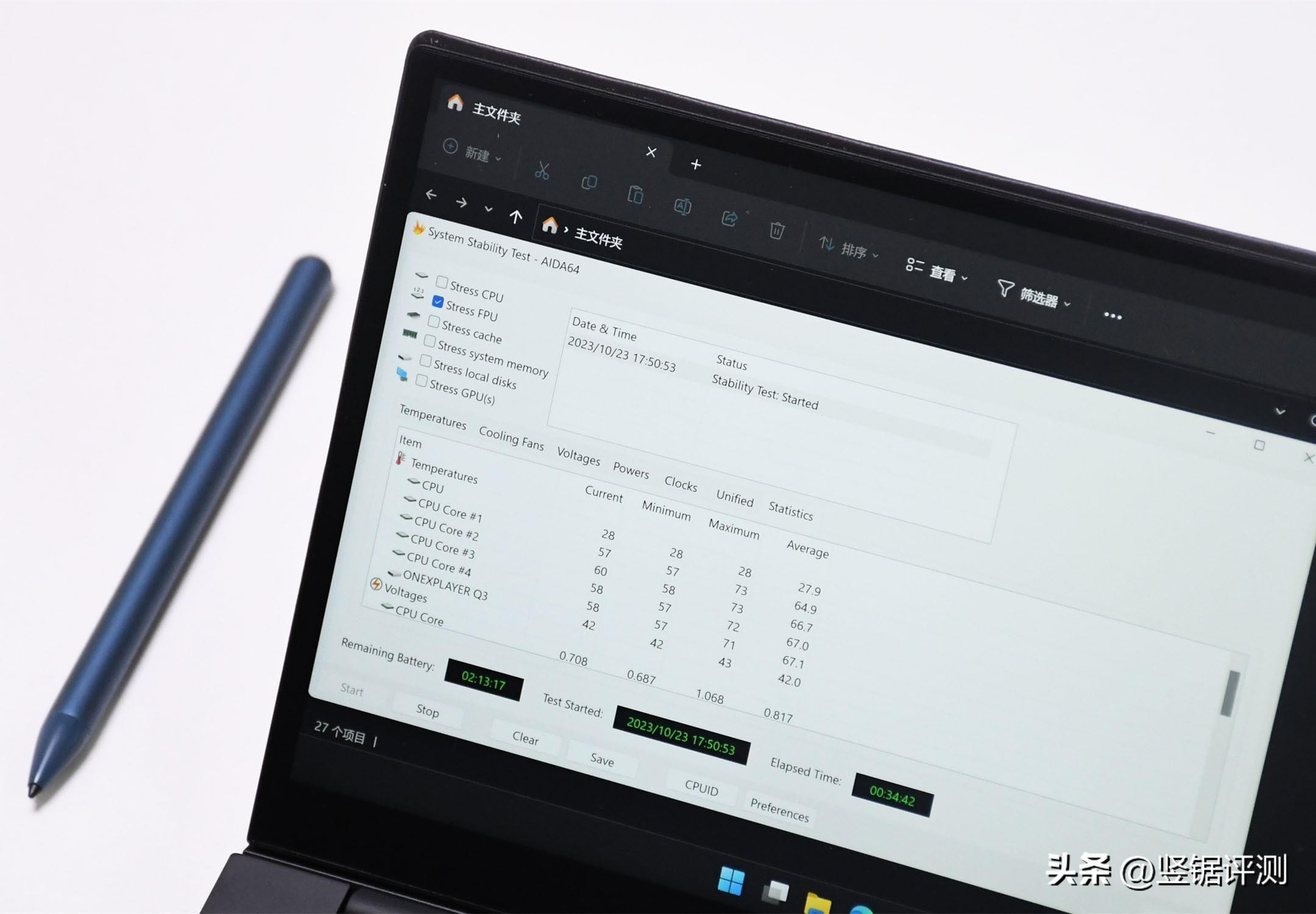 另外,壹号本One-Netbook 5在散热方面感觉也还可以,为主动式散热设计,也就是内置了散热风扇,通过AIDA 64稳定性测试中的“单烤FPU”进行了约34分钟测试,处理器核心温度最高为73℃,硬盘温度也才43℃,没有因为小巧的设计而使其散热效果差。