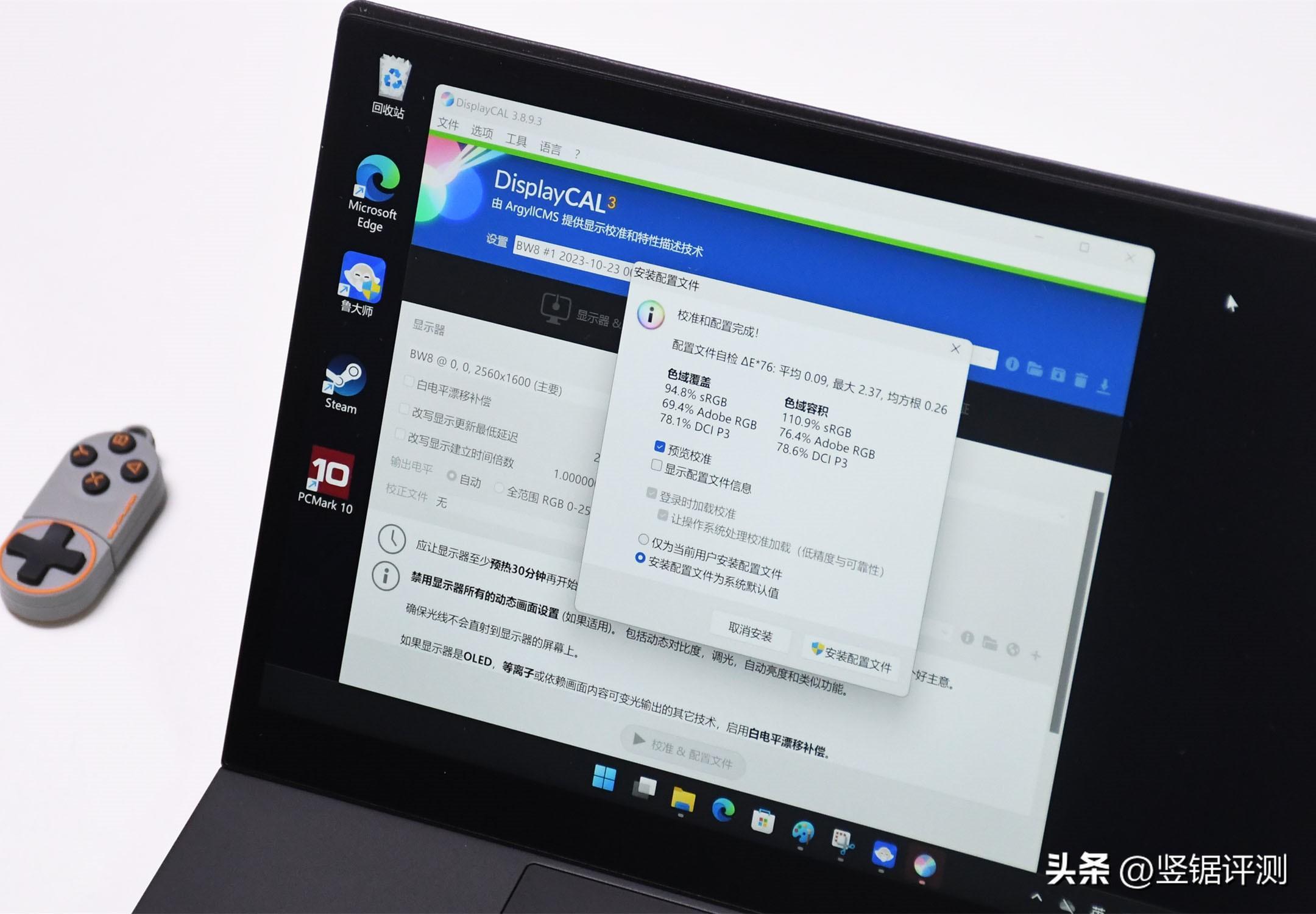 我用红蜘蛛校色仪联合DisplayCAL软件对壹号本One-Netbook 5的屏幕进行了测试,可以看到色域容积为110.9% sRGB,跟官方所称的108.8% sRGB色域容积相差不大,屏幕素质整体来讲还是不错的。