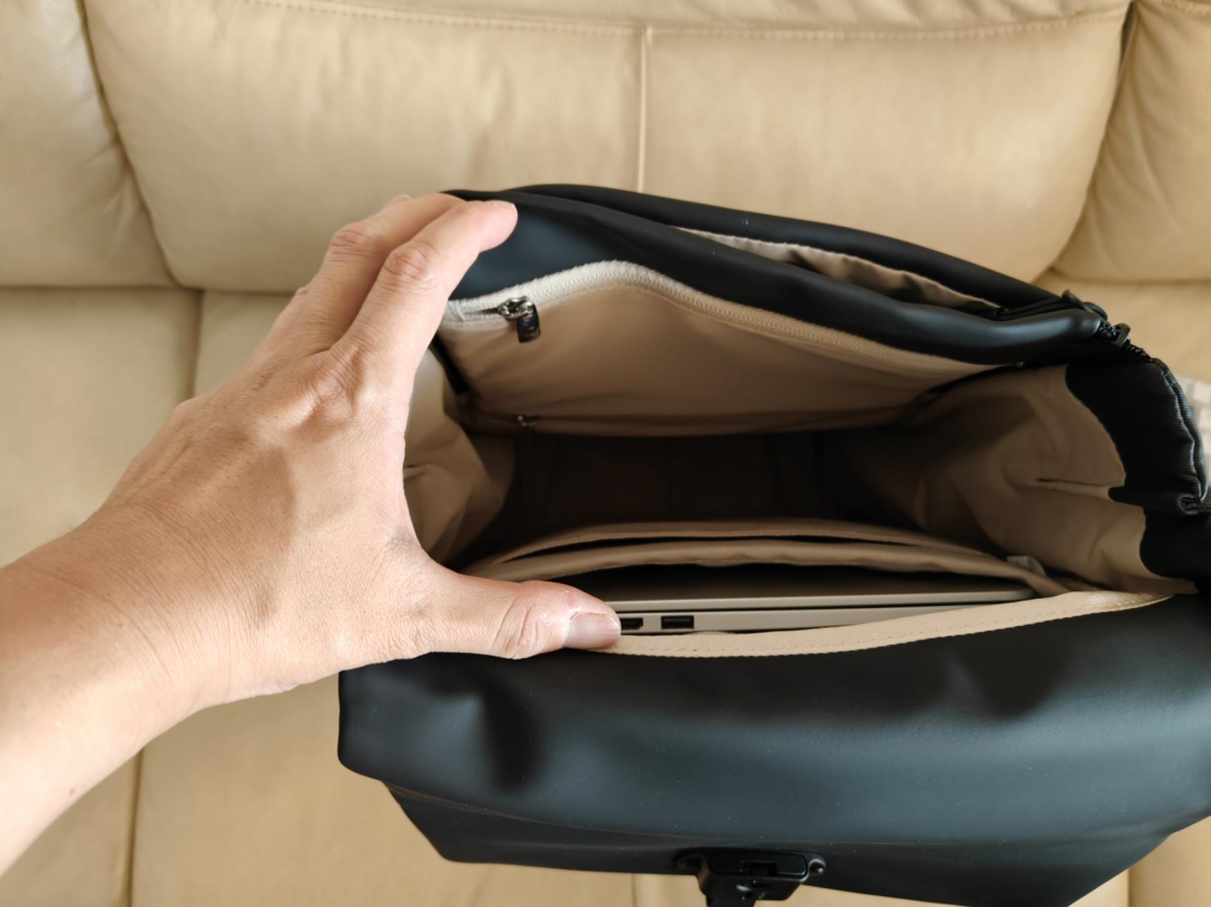 说起来,这款包的定位应该是带电脑隔层的通勤休闲包,不过对于笔记本的保护一点不怠慢,两面都是植绒布面非常柔软,完全不用担心划伤笔记本的A面和D面,而且空间足够,最大15.6寸的笔记本也是可以装下的。