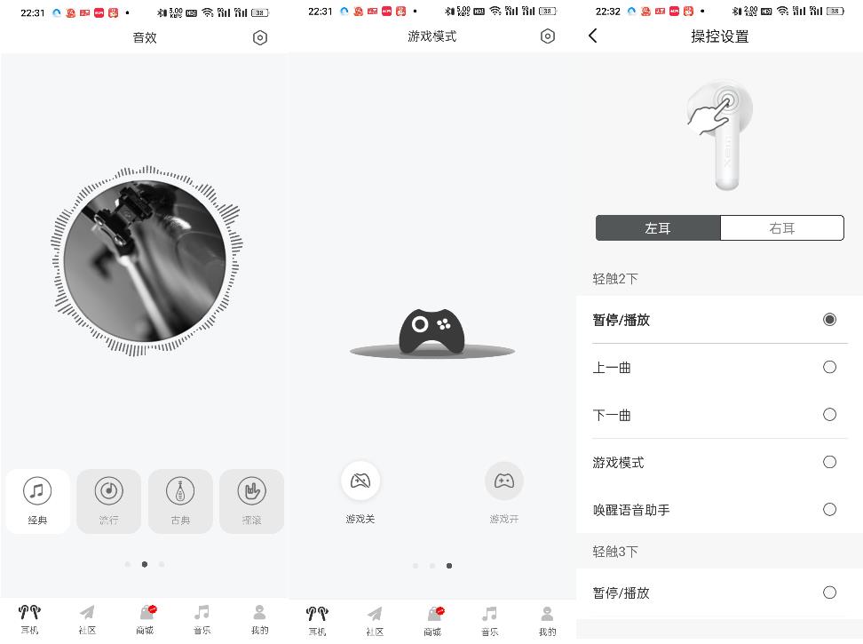 另外可以下一个漫步者APP,里面可以选择切换耳机的不同音乐风格、更改游戏模式、修改触控操作。