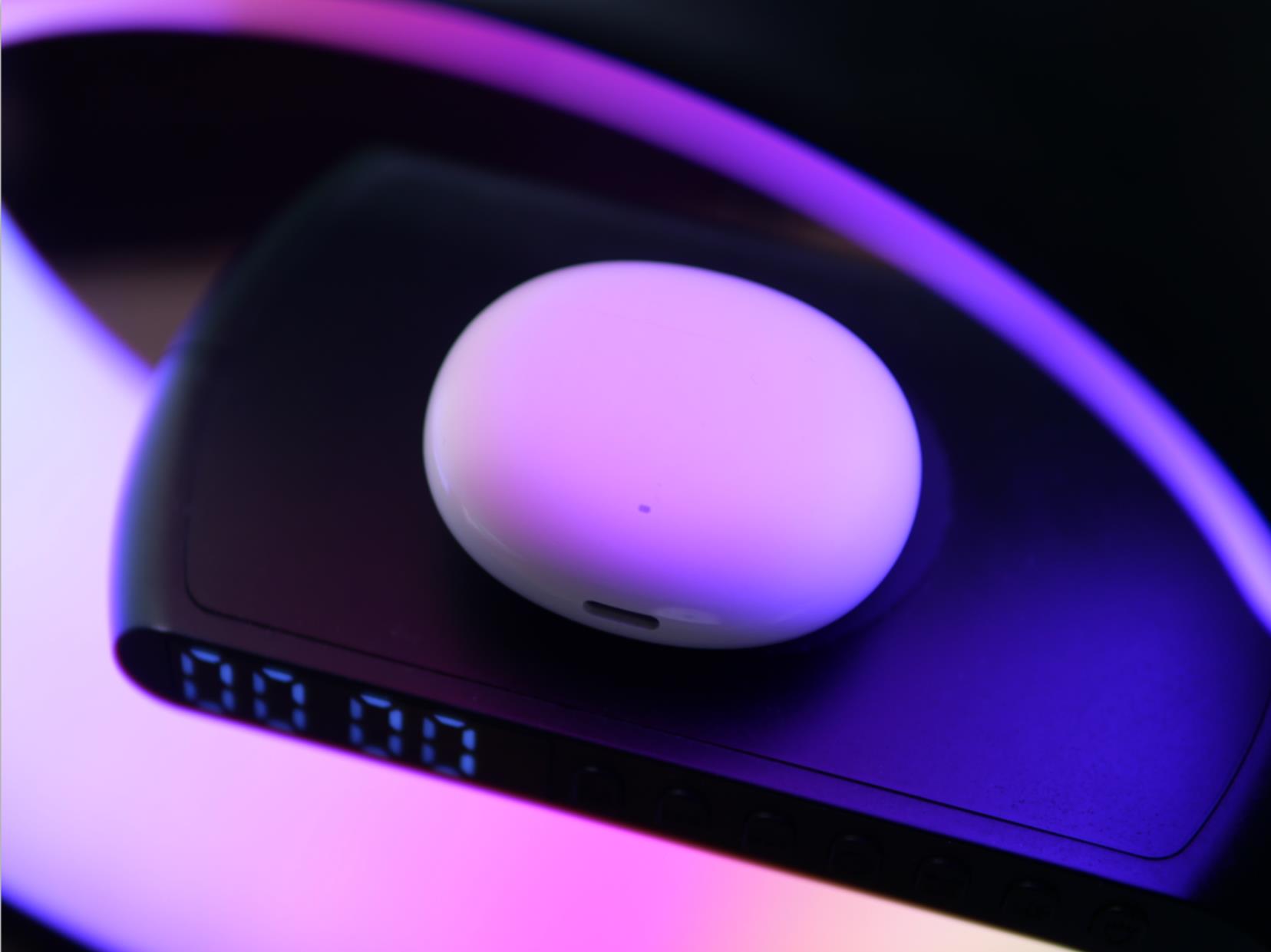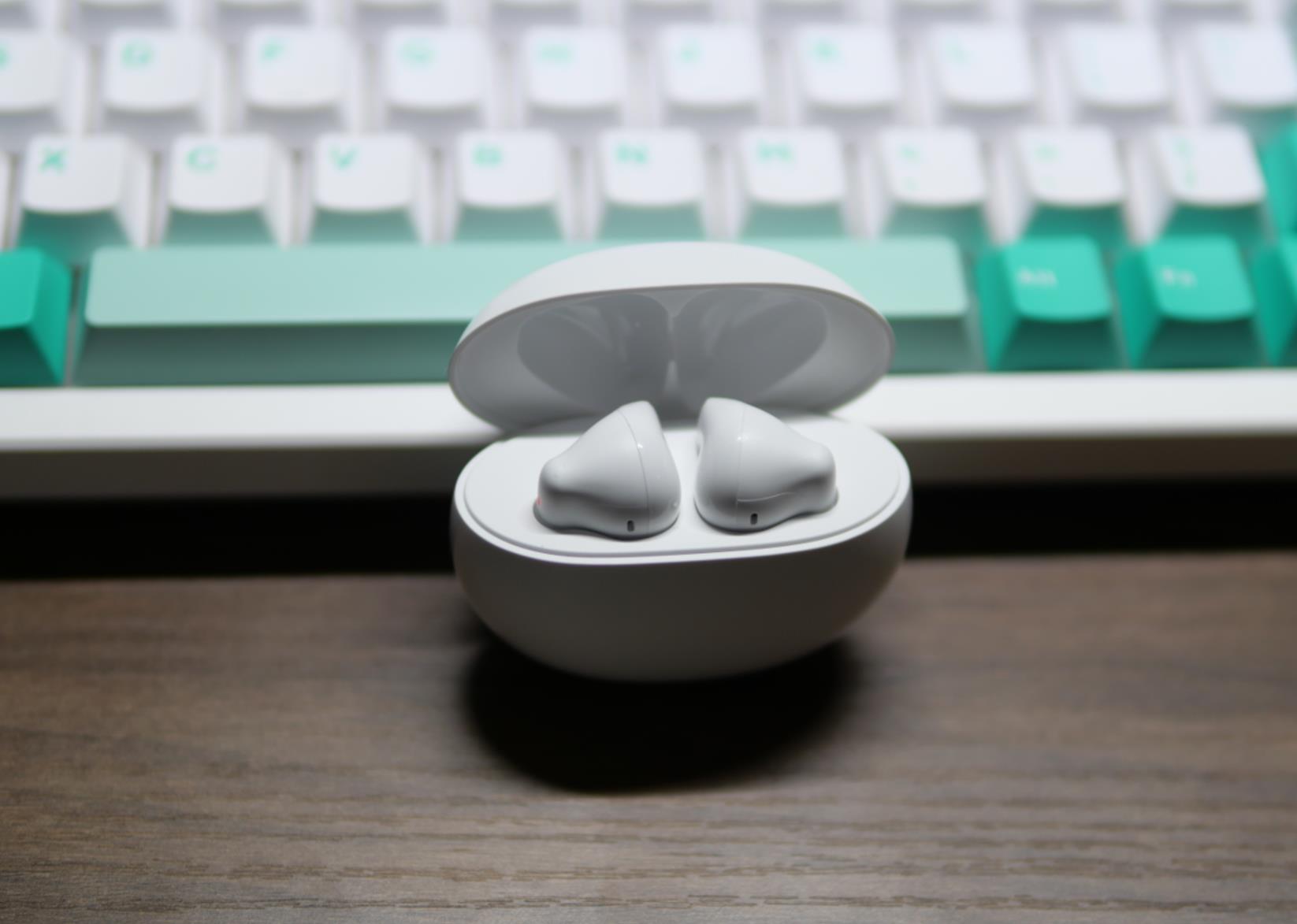 外观非常的小巧,耳机盒就像一个圆形的鹅卵石一样,整机的做工不错,无论电池盒还是耳机表面都打磨得光滑细腻。