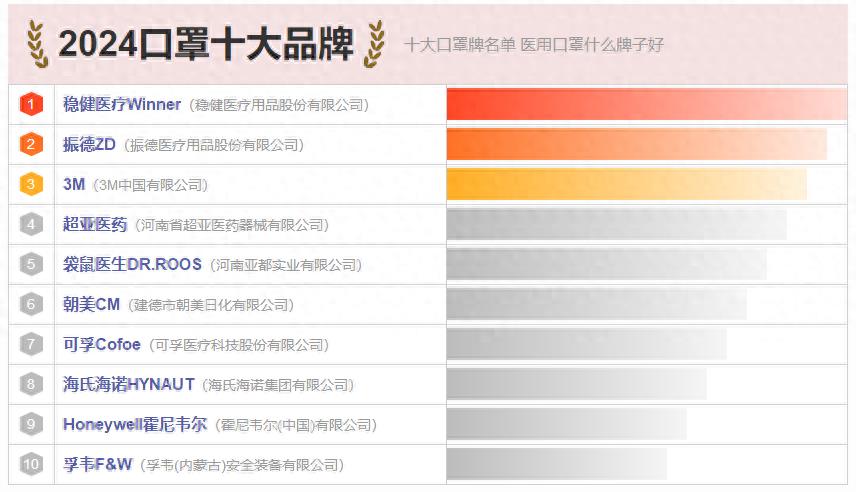 由于全球疫情的爆发和传播,大家对于口罩的需求量越来越大,对口罩的质量和防护标准也越来越重视,那么口罩什么牌子好?下面,小编为大家分享口罩十大品牌排行榜,包括稳健医疗Winner、振德ZD、3M、超亚医药、袋鼠医生DR.ROOS、朝美CM、可孚Cofoe、海氏海诺HYNAUT、Honeywell霍尼韦尔、孚韦F&W等。该榜单由CNPP品牌榜中榜大数据研究院和CN10排排榜技术研究院专业测评而得出,一起来了解下吧。