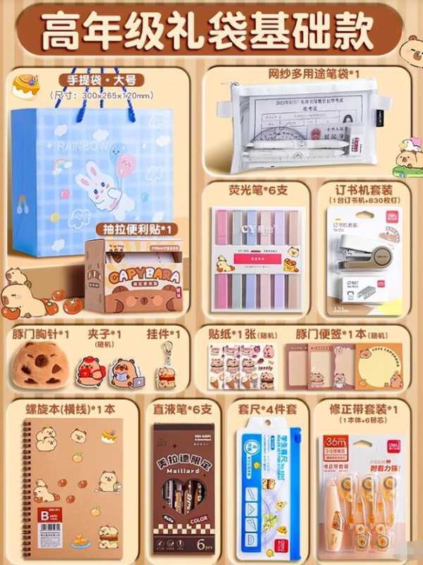 作为开学礼物再合适不过了。它不只是一堆文具,更像一份学习鼓励包——用精致的套装告诉孩子“新学期要加油呀”,让学习多了份仪式感和乐趣。爸妈把它送给孩子时,还能聊聊新学期的小目标,不知不觉就拉近了亲子距离。有了这套文具,孩子会觉得学习不是孤单的事,带着满满的动力开启新学期~