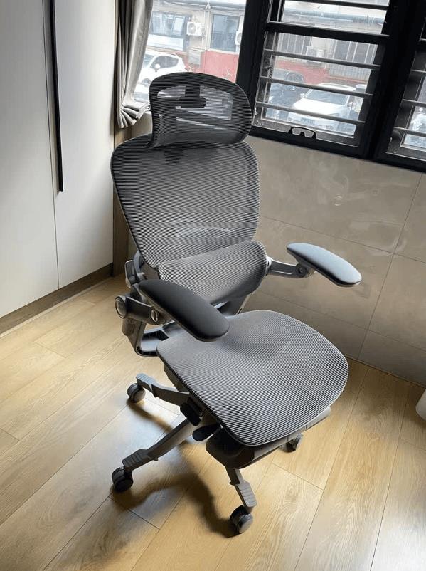 J2的“8D扶手”是它的一个亮点,调节方向非常多,前后、上下、左右、角度旋转都能调。对经常改姿势、或者用不同设备办公的人来说很实用。坐垫和靠背的网布带一点绒面感,柔软但不闷,长时间坐也不会觉得不透气。框架用的是航空级材料,能明显感觉到椅子整体比较结实。金属脚架稳,轮子顺滑,静音表现不错。因为送货上门并且是装好后的状态,所以到手就能直接用,对不想自己折腾的人很友好。不过,J2也不是没有缺点。椅面偏窄,体型大的用户可能会觉得不够宽;后仰角度对特别喜欢“大躺”的人来说可能略显不足;扶手虽然调节多,但在某些角度下会有一点点轻微晃动。