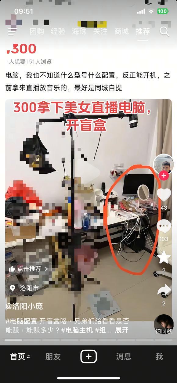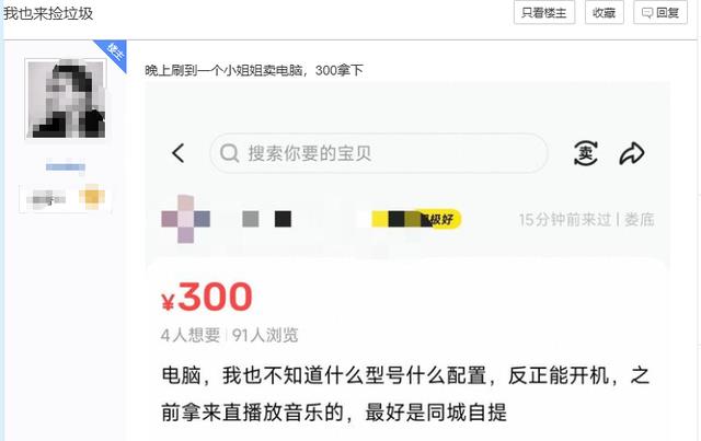 最近,贴吧里出现了一位“真正的捡漏王”。他花 300块,从一位网红女Coser手里把整套电脑连带外设全收走了——包括主机、显示器、键盘、鼠标。