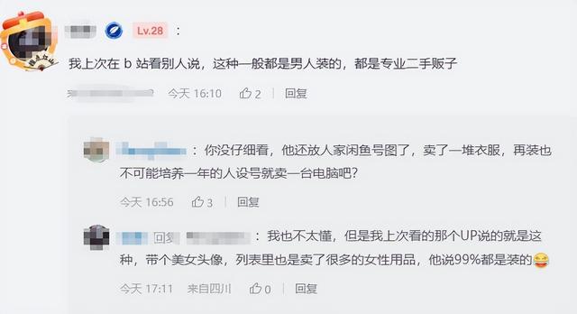 “这种头像看着像Cos美女的闲鱼号,99%是男人装的。”