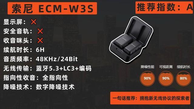 索尼ECM-W3S将专业音频性能浓缩于一个轻巧便携的系统中。发射器仅重17克,佩戴轻盈隐蔽。其技术核心是高效的数字降噪和先进的蓝牙5.3无线传输,后者确保了在复杂环境中的连接稳定性与150米的有效操作半径。音质方面,48kHz/24Bit的数字输出格式保证了从源头开始的高质量,全指向麦克风设计适合大多数采访和自述场景。与索尼相机生态的深度集成是其独特优势。但需要注意的是,其降噪算法主要针对宽频环境噪音,在户外大风环境下,仍需配合专用的防风毛衣才能达到最佳的收音效果,这算是一个额外的配件考量。