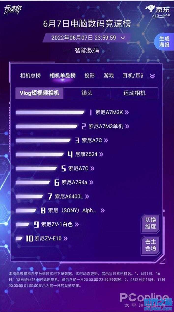 相机方面,截至6月7日23:59,索尼FE24、索尼A7M3K、索尼A7M3单机位居相机总榜单品销售额榜TOP3;而在相机单品榜中,位居Vlog短视频相机前三的同样是索尼旗下的产品,分别为索尼A7M3K、索尼A7M3单机、索尼A7C。