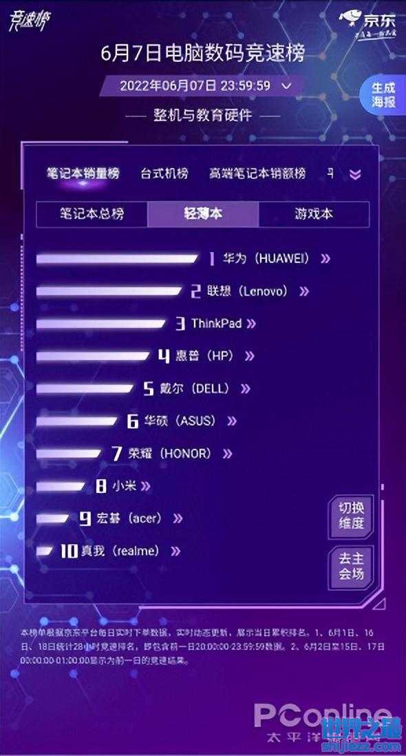 京东618电脑数码竞速榜竞争激烈 华为斩获轻薄本销量冠军