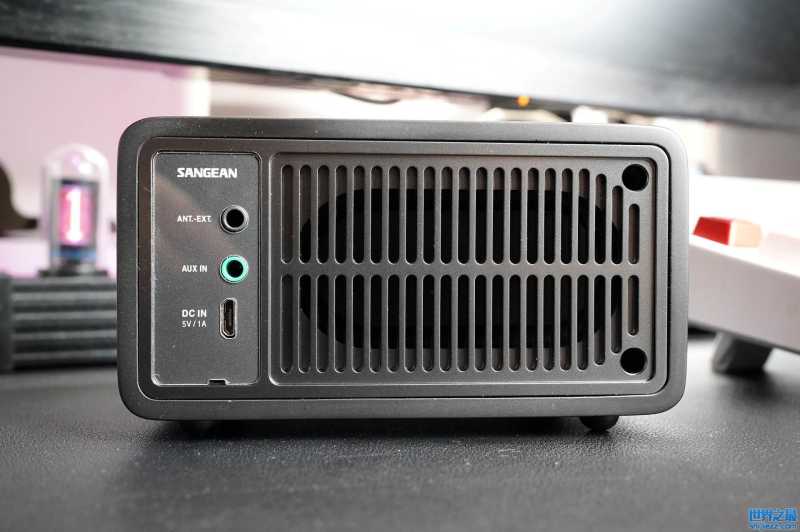 主要的功能接口设计在音箱的背部,背部可以看到产品接口和散热的栅栏结构。接口方面包括辅助天线口、3.5mm的输入和充电口,可玩性还是比较不错的。扬声器设计在音箱背部,40mm的全频喇叭搭配被动低音设计,小小的身体也蕴含不错的能量,音质表现在同类产品中还算不错。充电一次能够提供近30小时的续航,居家或者外出使用都比较方便。想要一个体积不大,兼顾设计感的蓝牙音箱的话,山进这款莫扎特是个不错选择。