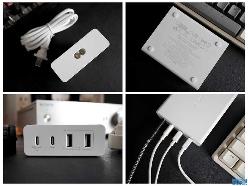 2A2C的接口设计通用性还是很强的,特别是针对苹果用户的需求做了深度开发。USB-C1口支持单口、双口、三口模式下的96W输出,可以满足MacBook Pro的使用需求。USB-C2口可以支持30W输出,轻松匹配MacBook Air的使用需求。贝尔金这款108W实用性还是很不错的,特别是USB-C1口可以一直保持65W的输出,轻松满足一般笔记本电脑的需求。同时工作的话,笔记本电脑、手机、耳机和其他小功率数码产品都可以轻松搭配使用,最多同时支持4个充电设备同时使用。