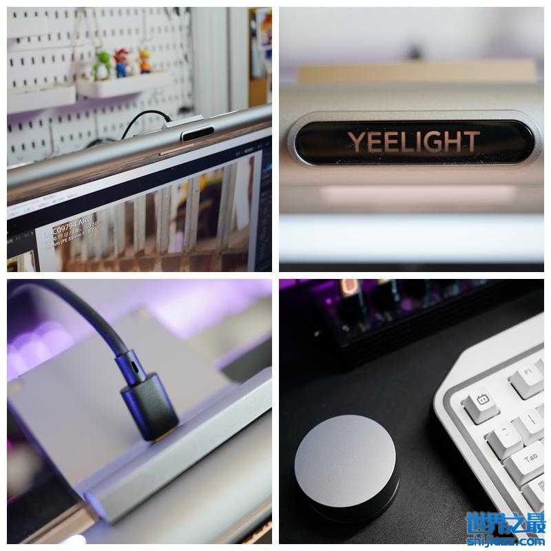 数据接口方面采用了TYPE-C口,考虑到Yeelight屏幕挂灯Pro是一款支持智能家居的屏幕灯,电源线采用独立的双头供电方式。额外多说一嘴,随机的旋钮开关可玩性很不错,通过长、短、连续按压和旋转的组合,可以实现模式切换、灯具开关、亮度调节和色温调节等操作,日常使用很方便。