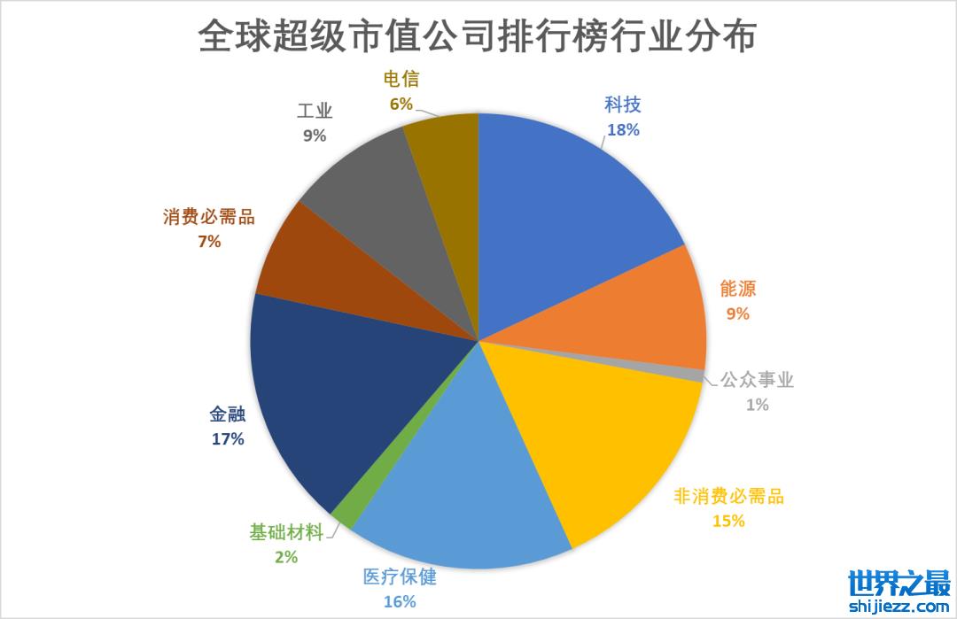 北京时间京融智库细分出超级市值公司所在的具体行业或产业,以此为超级市值公司代表的全球产业结构“画像”。