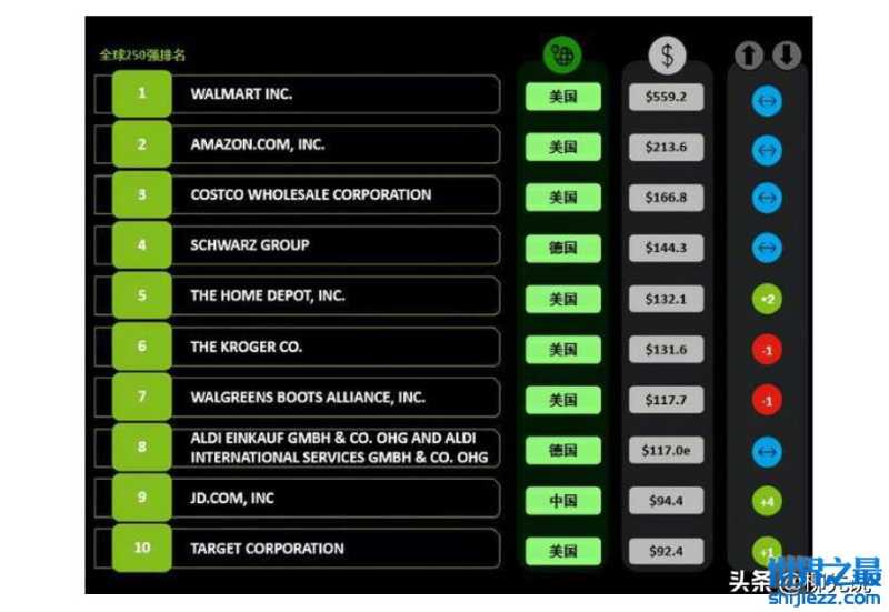 2022年全球十大零售商:美国7家,德国2家,中国只有1家上榜