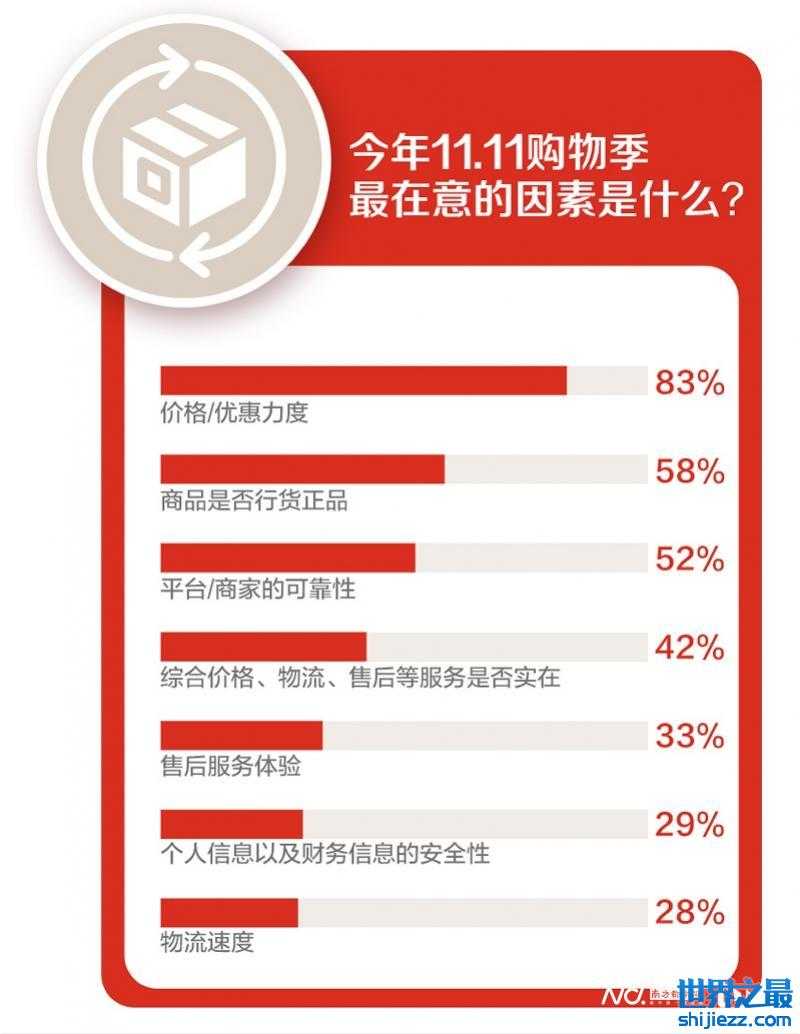 优惠力度向来是消费者网购时最在意的因素。调查结果显示,看重价格/优惠力度等因素的消费者占比最高,达83%。而去年,网友们更希望网购时不做数学题。南都2021年《双十一电商平台服务满意度调查》显示,近六成受访者希望优惠方式更精简,降低优惠门槛。其次为优惠券要实在,不注水。