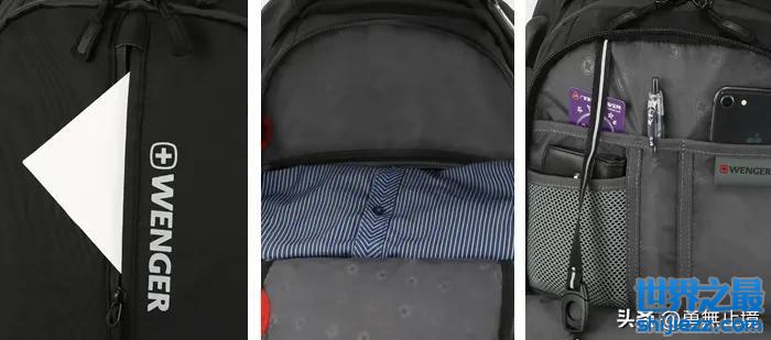 A款:瑞士军刀的背负性是不错的,人体工学的肩带,透气减压设计,抗震设计,容量大,可以装15.6寸的笔记本,同样也是具备防水功能,0.85kg的自重不算轻,凑合
