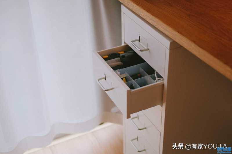 与办公桌想搭配的是宜家海尔默抽屉柜,6层抽屉,高度正好可以放在桌子下方,完美。这款收纳柜外观耐看,白色也比较百搭,而且金属材质质感不错,同时也比颗粒板柜子更环保柜子收纳能力强,6层收纳柜,可以装各种零碎的小物件。