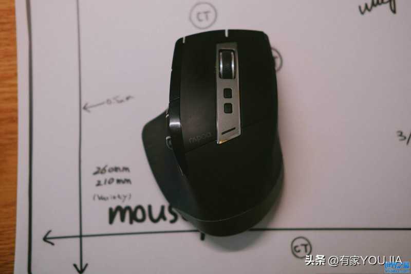 鼠标是这款雷柏MT750L,颜值高,用了黑灰搭配,侧面是棱格纹理,质感还不错,造型跟罗技Master很像,当初也是因为Master价格一直比较坚挺,没舍得买。