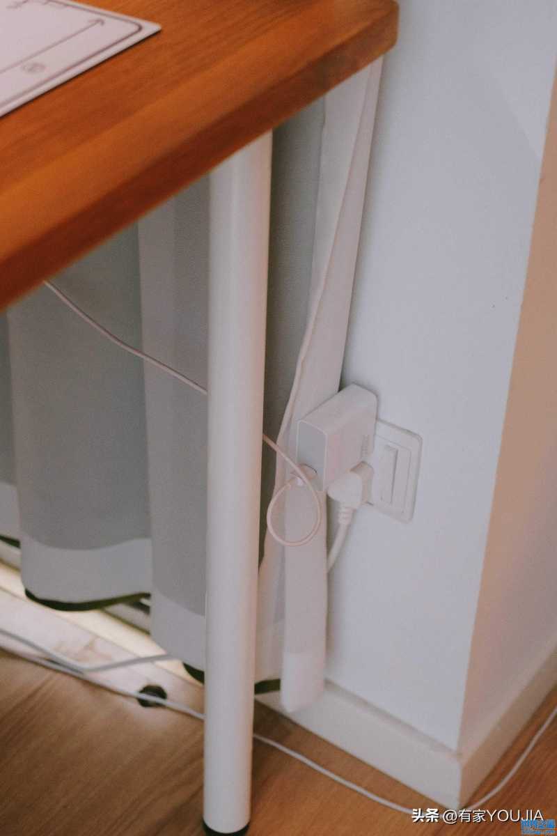 桌面上用电设备一多,就会露出一堆电源线,直接买了这个收纳支架,可以专门放插座和电源线。这款收纳架是需要安装在桌面底部的,用螺丝固定,我为了省事直接挂在桌板的,牺牲了下稳定性。我可以同时将10插的插线板、路由器(横放)、USB分线器和两款外接硬盘放在上面,还是挺能装的。
